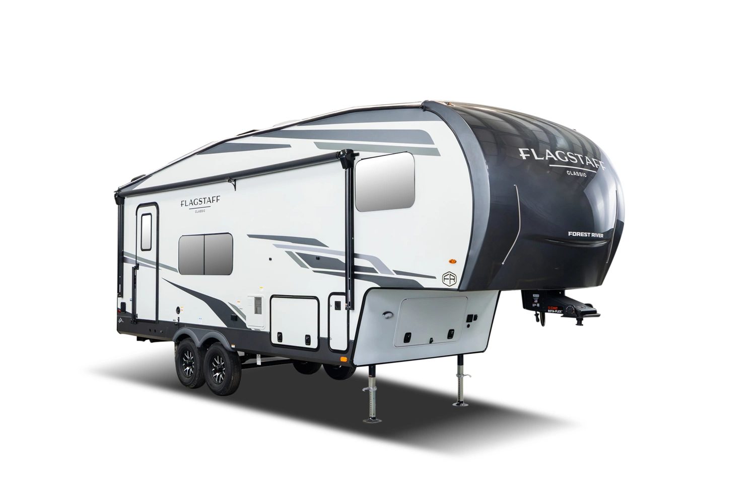 This under-30’ fifth wheel packs luxury into a compact design! Enjoy a spacious living area with a 67" theater seat, 44" dinette, and entertainment center with TV. The kitchen offers a pantry, fridge, and plenty of counter space, while the private front bedroom includes a queen bed (king optional) and wardrobe storage. With a roomy bathroom, pass-thru storage, and a 20' awning, it’s the perfect blend of comfort and easy towing.