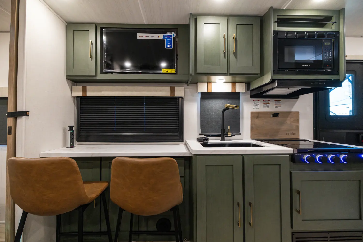 Compact yet full-featured, this travel trailer offers a private queen bed with overhead storage, a spacious kitchen with large fridge and air fryer microwave, full bath with high-powered fan, and walk-in pantry. Built for four-season camping with heated enclosed underbelly, radiant foil insulation, and 12V tank pads. A 16' power awning expands your outdoor living space.