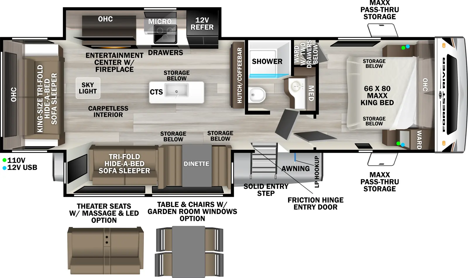 - 2" Thick Vacuum-Bonded Sidewalls w/ High-Density Block Foam Insulation in Sidewalls, Floor, Slide-Out Walls and Roof