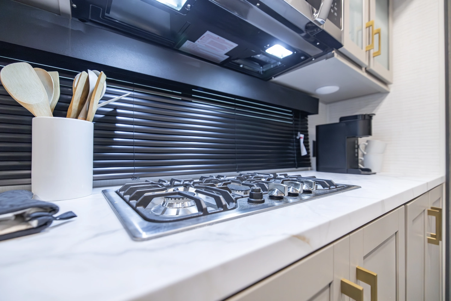• 3 burner residential style cooktop