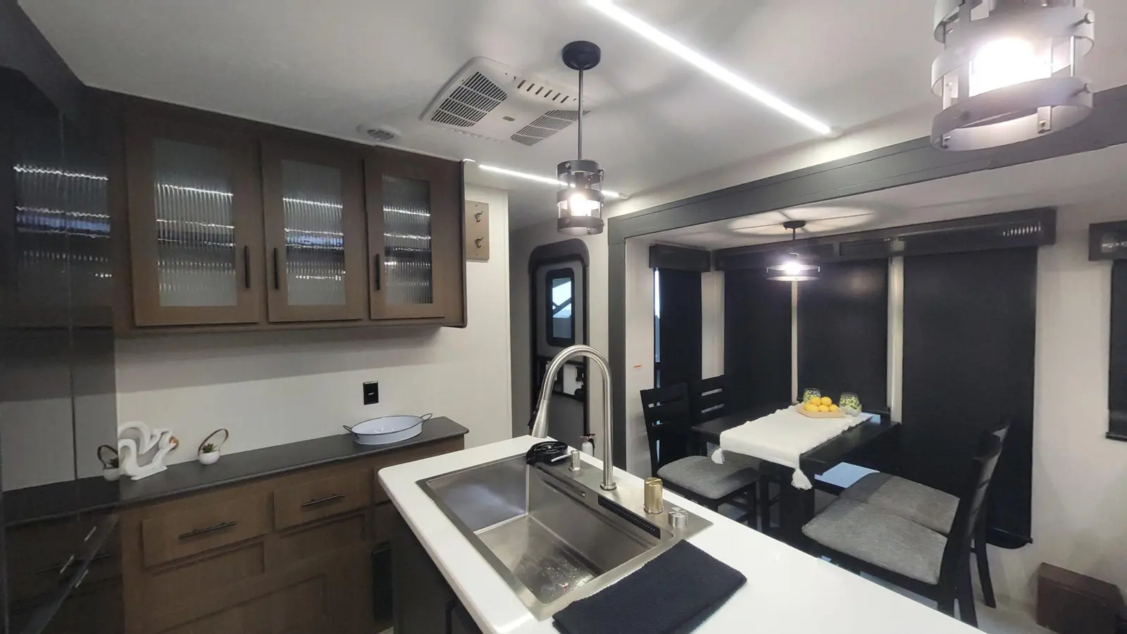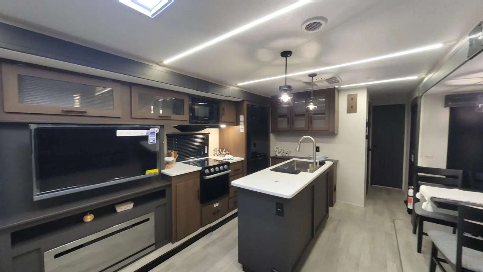The Wildcat Travel Trailers 278RLX floorplan has one entry and two slide outs. Exterior features include: fiberglass exterior and 20' awning. Interiors features include: kitchen island, free-standing dinette option, front bedroom and rear living.