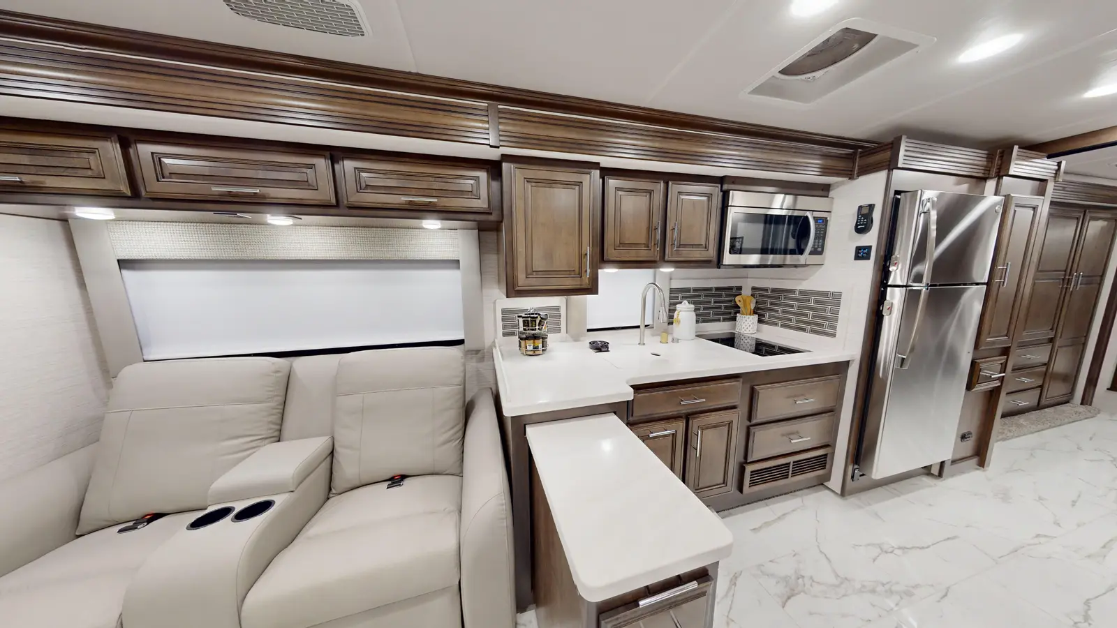 The Berkshire 39A by Forest River offers spacious and comfortable RV living with three slides, a king-size Tilt-a-View bed, a full rear bath, and a half bath. This luxurious Class A motorhome is perfect for extended road trips.
