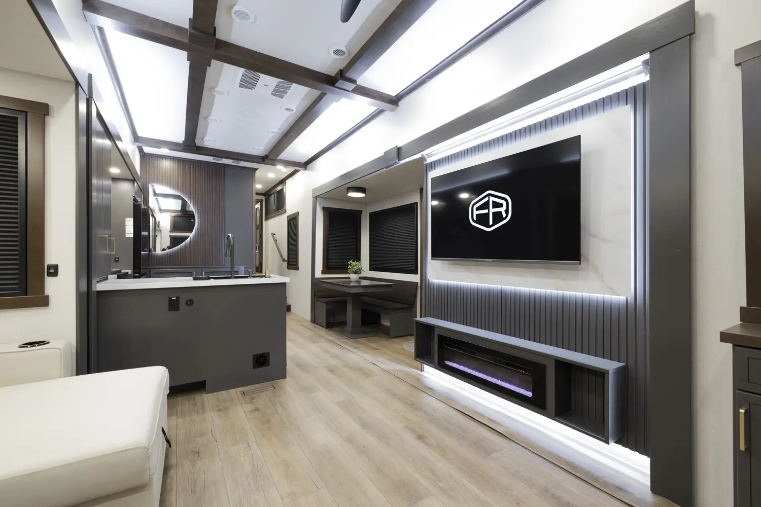 • Flush Floor Slides in Kitchen and Living Area