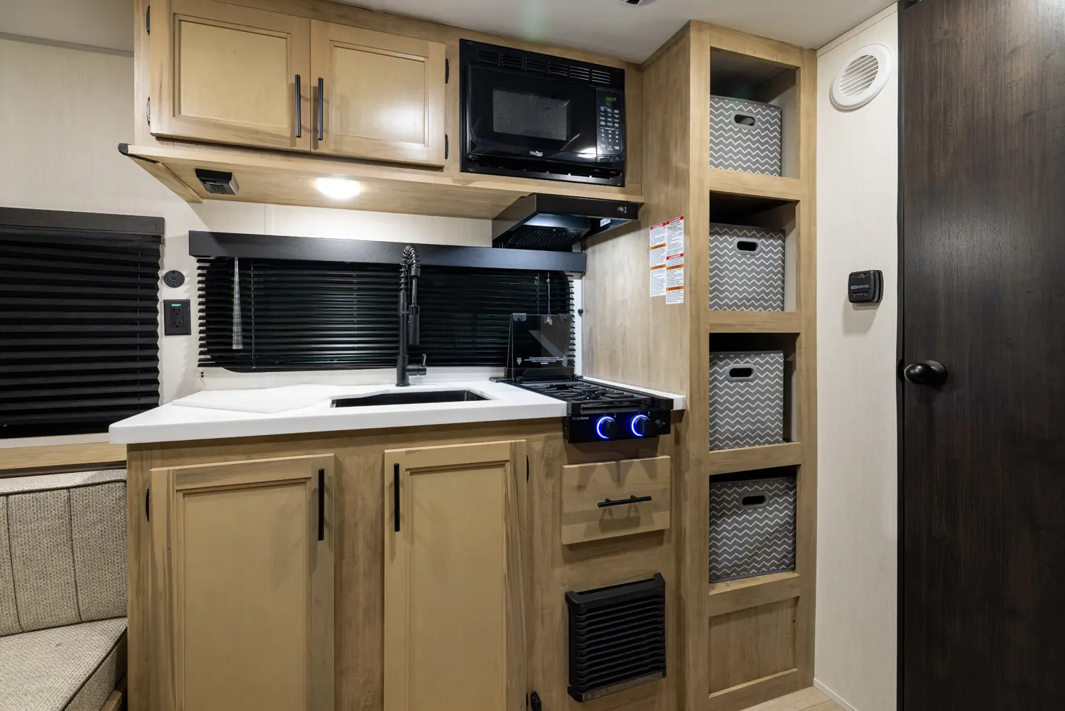 • Blackout Glass, Safety Slam, Friction Hinge Entry Door with Window and Shade Prep (N/A on LP models)