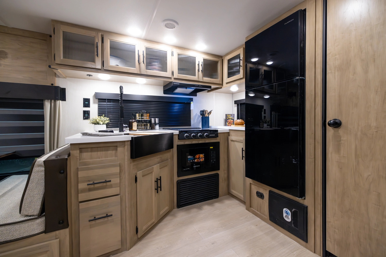 • Blackout Glass, Safety Slam, Friction Hinge Entry Door with Window and Shade Prep (N/A on LP models)