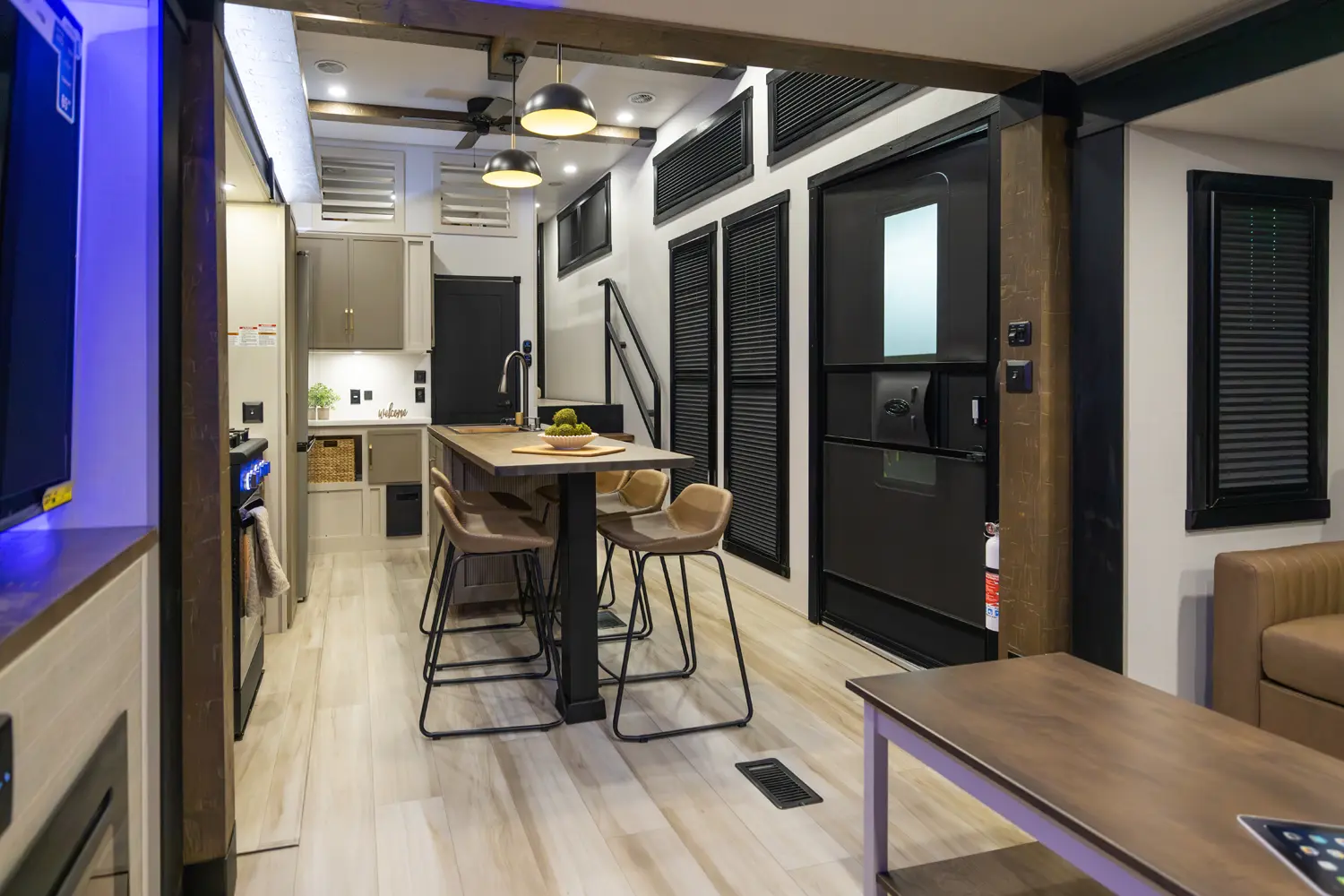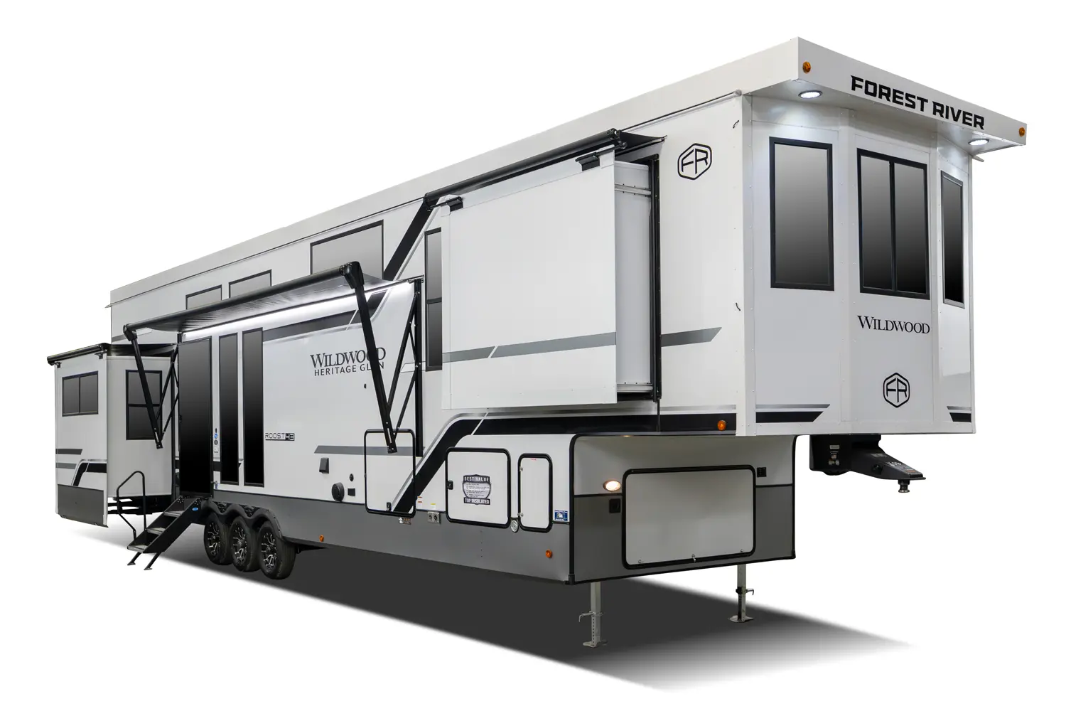 The ROOST43 provides a new segment to the RV market with a combination of a destination trailer in fifth wheel form. This creates the opportunity to move from locations easier than bumper pulling and provides the most square footage in this segment of RVs (530 Sq.Ft. compared to 399 Sq.Ft.). The ROOST43 is feature packed with residential style kitchen appliances, HUGE rear den, two lofts, bath and a half, laundry room, and an elegant interior design. The ROOST43 is will set a new era for RVing.